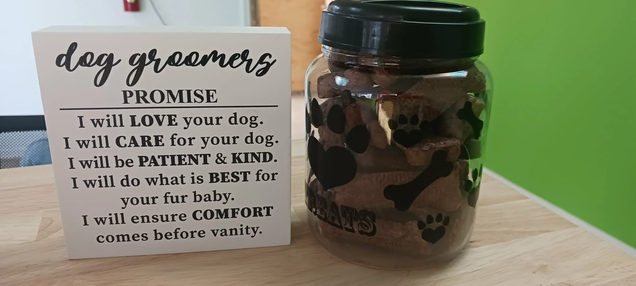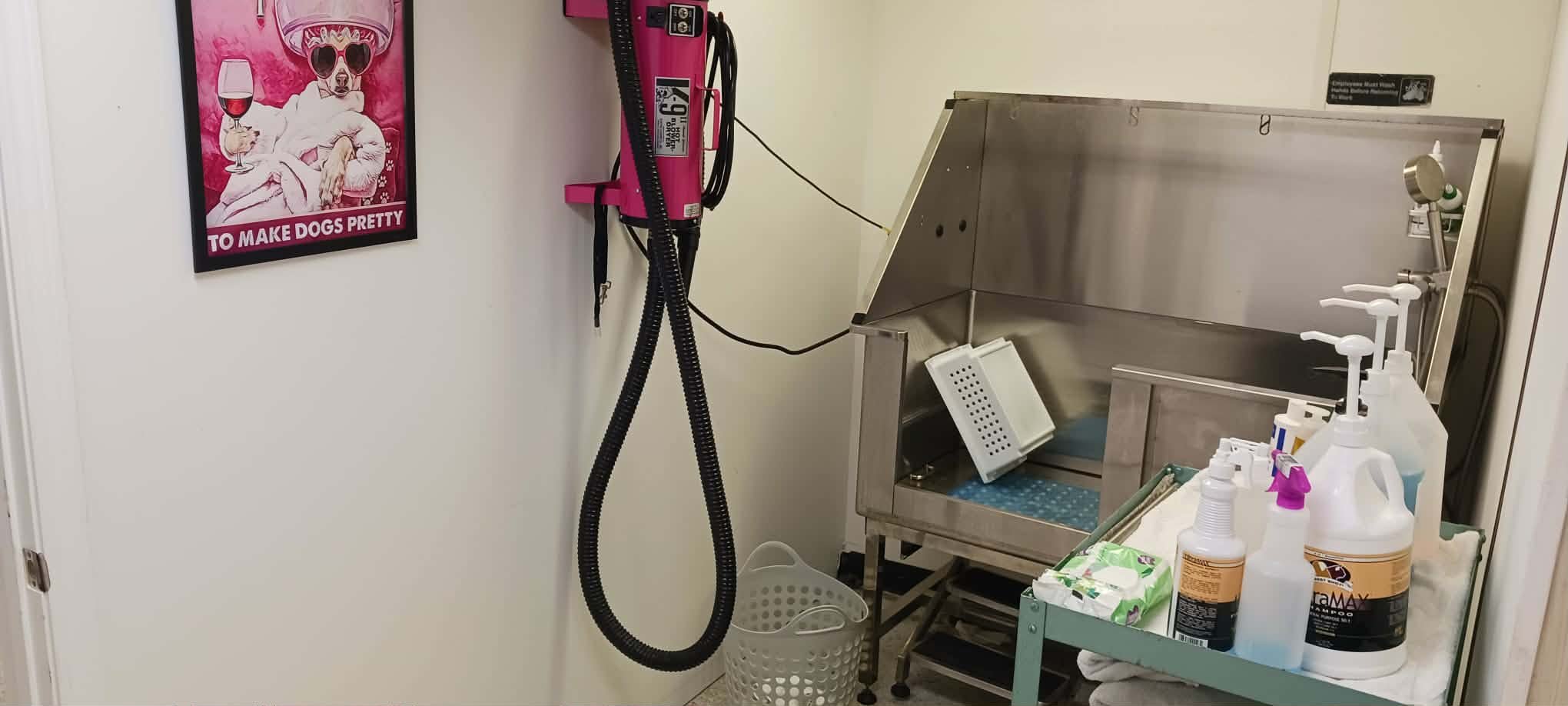 Rub a dub dub… Fur babies in a tub. They get the best hair scrub and shampoo with a nice breeze to dry them off before the finishing touches.