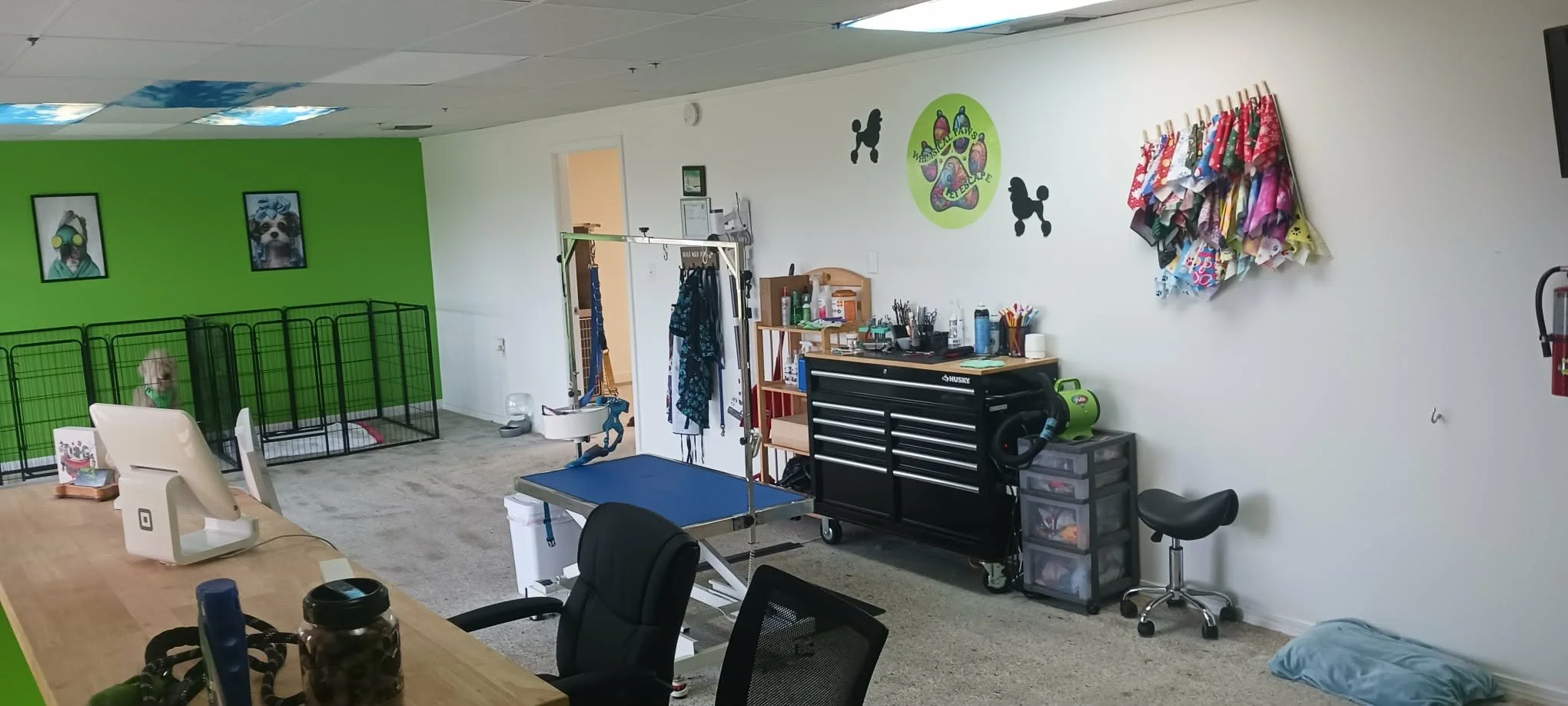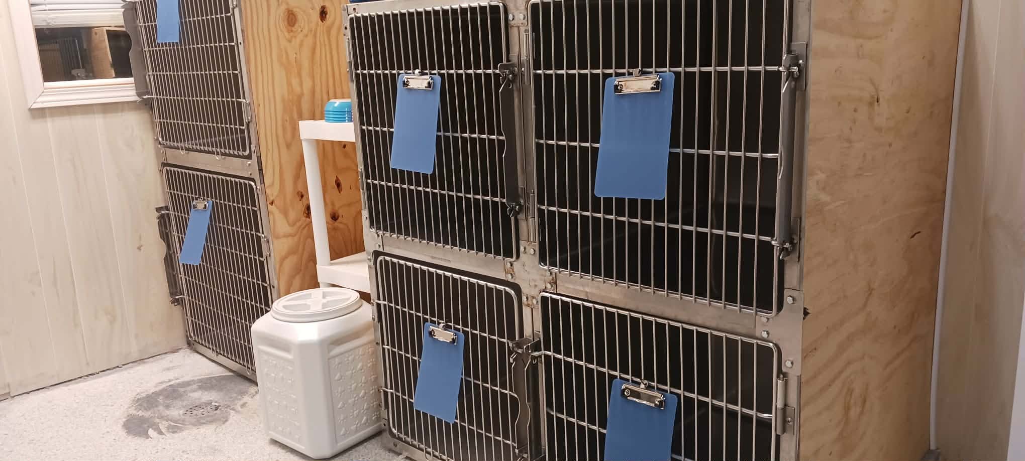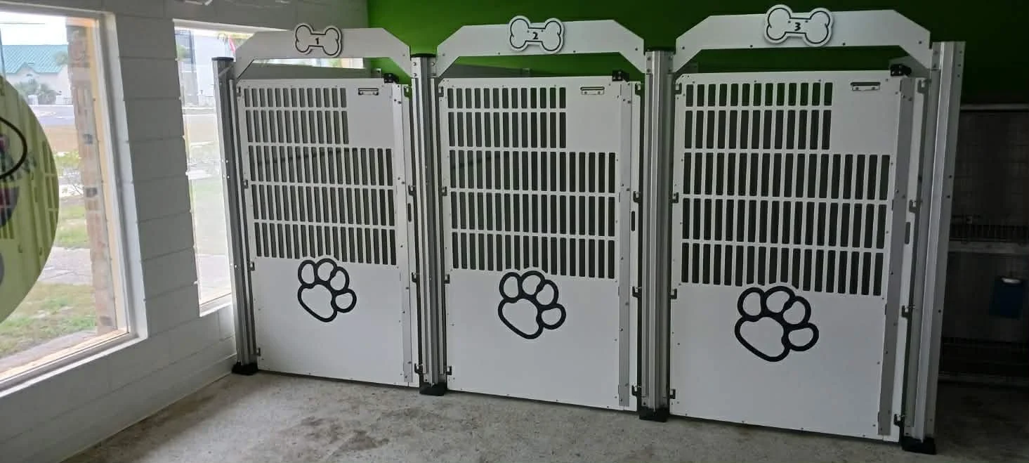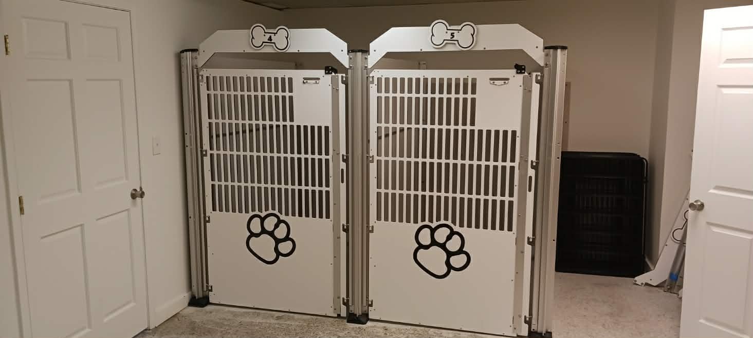 Fur babies awaiting their parents to pick them up after a nice day of grooming